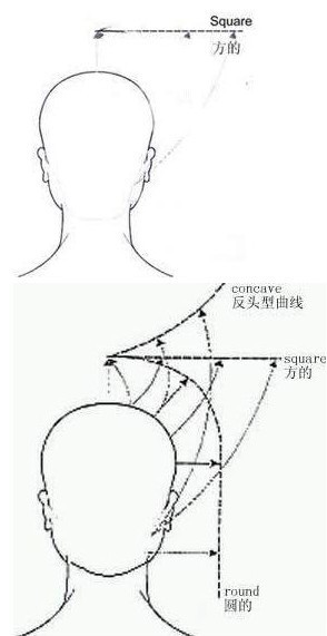 方型是指某个面(请参照四个面,五个转角)的头发被拉到相应面的位置,而空中的切口成一个平面,就称为方型。